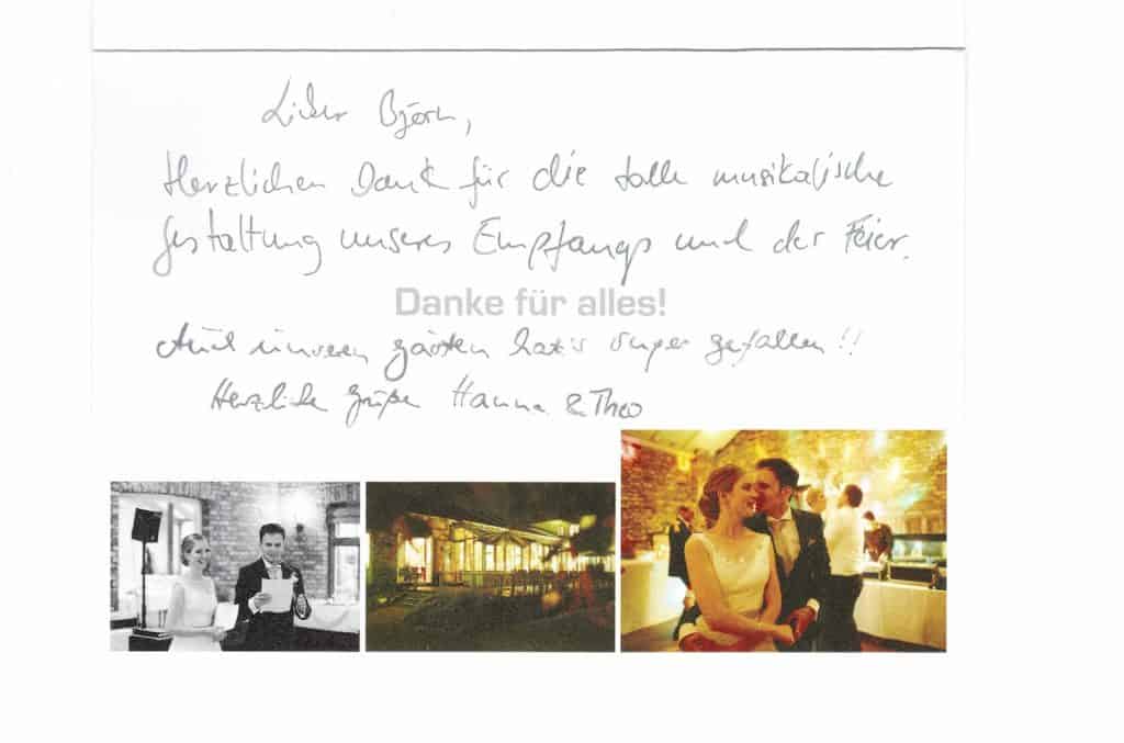 „Wir haben für unser Hochzeitsfest eine Jazzband für die musikalische Untermalung gesucht und gefunden!!! Vocal Invitation, es war eine der besten Entscheidungen die wir treffen konnten, sie haben dem Abend eine wunderschöne „Note“ verliehen, alle Musiker waren phantastisch aber insbesondere Björn Missal mit seiner Stimme, sie verzaubert…. wundervoll …sie halten jede Versprechung und haben unserem Fest was Besonderes verliehen …nochmals tausend Dank und wir werden einen Anlass suchen zu dem wir euch wieder buchen können!“